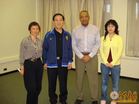10月20日我们来到纽约州府奥尔布尼,奥尔布尼是我们跨入美国的第一站;Troy Temullo先生是这里太极拳培训的组织者非常热情的迎接我们的到来。父亲多年来致力与太极拳的普及工作,在国内外有着相当高的知名度,当地太极拳爱好者踊跃参加了他的培训,可以说“门庭若市”热情度极其高涨,奥尔布尼大学也很快抓住这个机会,邀请父亲到大学里演讲,该校的副校长对太极大师的到来非常兴奋,极其热情接地待了我们,中国优秀的传统文化在他们眼中显得深奥而又神秘;在这里教学的华籍教授也很高兴能见到我们,他们对自己国家有这么优秀的文化和能亲眼见到国宝级太极大师感到非常自豪和幸运,我们大家很友好的一起合影留念!