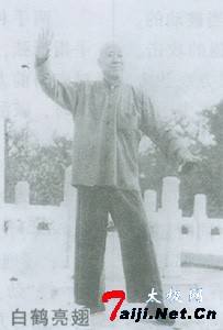 将两臂左右对称分展,身脊中直。面向正前,形如鸟翼,称为白鹤亮翅。两手一上一下且两臂不对称。身体略作扭斜者,祢为展翅。用于技击时,多在敌拳快猛而我方躲闪不及时。用两手挑采敌臂,转腰化其攻。并顺其劲力方向滚卷小臂。使对方向旁侧落空,然后用肘击或用手臂前击,但两臂都不能失却?劲。此式之技。用于对付目前较火爆的“箍颈打膝”招法。真是再恰当不过了。