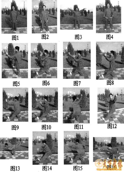 要领:震右脚、搓左脚、提右手须协调连贯,一气呵成。右弥肘上弹发力应惊弹抖炸,快迅突然。