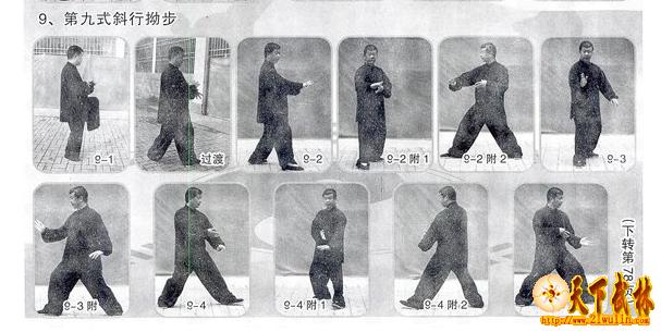原文:十三总势莫轻视,命意源头在腰膝。变转虚实须留意,气遍身躯不少痴。 腰是轴,须旋转;膝是活塞,调节轮子转的方向;裆部一松,则膝上升;裆部一紧,则膝下沉,重心永远平衡。这就是变转虚实的方法。得法,则周身是圆的,没有障碍之处,就不会少滞。 原文:静中独动动尤静,因敌变化是神奇。势势存心揆(kui)用意,得来不觉费功夫。 彼动我随,是“静中触动”,动的圆,所以“虽动犹静”,全是因对方来劲而变化。他的方向变化大小、时间、快慢,我不但随着变化,而且争取主动,比他占先一步。看似神奇,实系一定规律,妙处全在于“熟”字。平时练拳每式要揣思它的道理、作用,日久自然得悟其妙。 原文:刻刻留心在腰间,腹内松净气腾然。尾闾中正神贯顸,满身轻利顶头悬。 头两句是说中盘内气,注意腰间旋转时,腹中能松而静,则内气旺盛舒畅。后二句是说外形,下盘要求尾闾中正。尾闾,俗名尾骨,即长强穴,要做到 中正,须略使向后上翻,如上身端坐时状态。尾骨上翻,则前边小腹斜向后合,而气舒松,精神直通到头顶,这是和下盘的联系。上盘则百会穴如同悬上一绳,把全 身提起来,所以满身轻利。 原文:仔细留心向推求,屈伸开合听自由。入门引路须口授,工夫无息法自修。 练拳时一些小动作,也要留心仔细推求原理。应当怎么做,怎么屈伸开合,这里说“听自由”不可误解,不是随便的自由屈伸开合,而是按照原理规 律,很自然的动作。所以又说“入门引路须口授”,不但要求明师的讲道理,并且要正确示范,然后根据所学的仔细推求,长期锻炼,则于拳法自然修进。这是学拳 的程序,说明入门不经人讲明道理不行,不自己仔细揣摩不行,不下工夫练也是不行。因此,我学到的规律是,多听(听道理)、多看(看示范动作)、多想(揣摩 道理和示范动作)、多练(照理照样的练)。 原文:若言体用何为准?意气君来骨肉臣。想推用意终何在?益寿延年不老春。 体是动作的形式,用是作用。不拘形式和作用,全是以合理的意气为主。最后的结果,是为了益寿延年,劳动生产。 原文:歌兮歌兮百四十,字字真切已无遗。若不向此推求去,枉费工夫贻叹惜。 这是说,讲的道理字字真实切要,已无保留,全在学者照此推求锻炼。如不用心推求,而盲目的练,等于白费了工夫,所以实践必须结合理论。