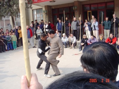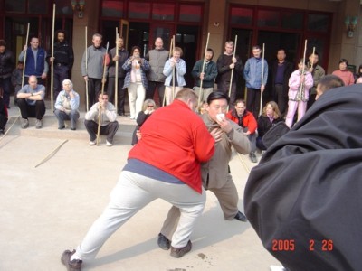 2006年春节陈小旺老师在家乡陈家沟教习《陈氏太极枪》套路,其中的白蜡杆枪杆由河南省宁陵县白蜡杆加工产供应。