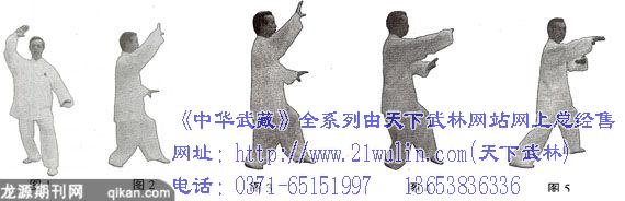 综上所述,白鹤亮翅式之特点是上分下踢。分以开敌正门,暴露其裆腹,我本坐身虚势,提踵踮足之虚脚乘隙起腿飞踢敌之裆腹或胫骨。因白鹤亮翅是稍起身飞踢,所以是以踢敌腹裆为主,以踢胫骨为辅,散手之时亦常实施套腿还踢。其腿法较为复杂。敌受我之分,其劲已落空而倾侧,复受我下部之攻击,必负痛而轰然倾跌矣。故《太极拳体用全诀》云:“舒臂提踵似鹤栖,着意随心肱贯气,上分下展开敌门,信步攻防惊天地。”(图1、图2)二、退步跨虎斟解