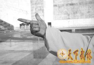 (2)侧掌 基本要领同上,惟中指尖略向侧后方。如单鞭,左掌中指略侧向右后方。