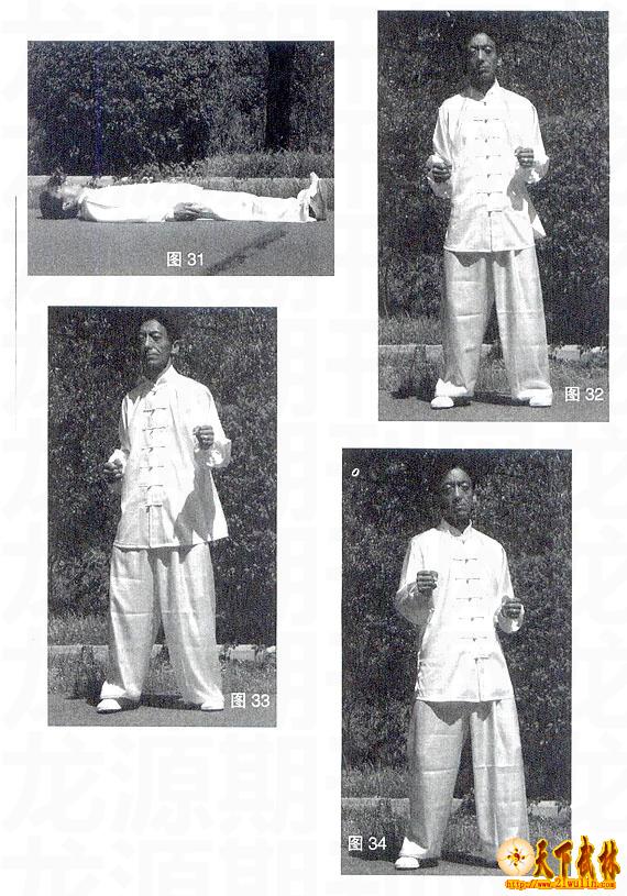 丹田呼吸:丹田闭气。丹田不吸也不呼(图33,图34)。