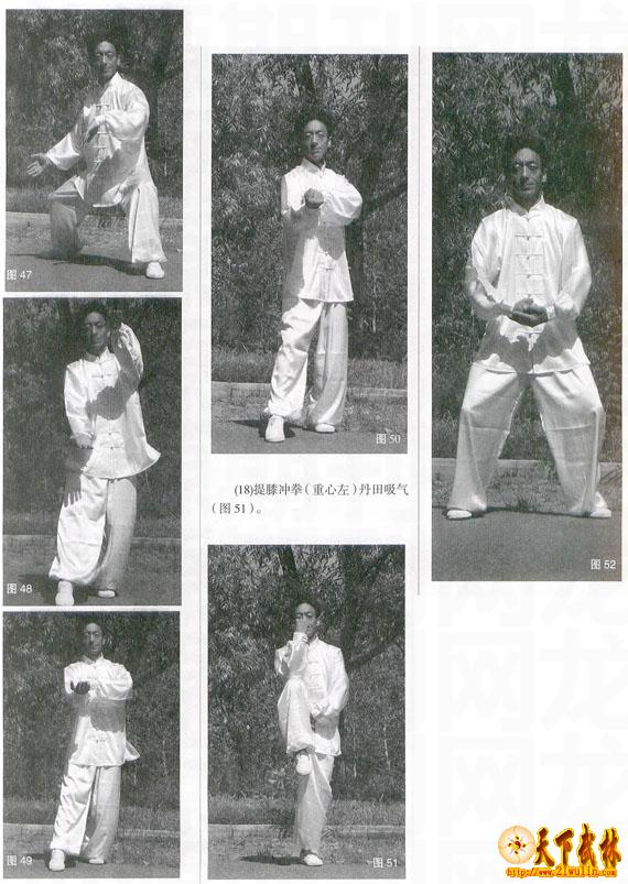 (5)下揉(重心左)丹田呼气(同前文图16)。