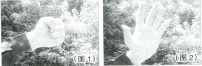 2、掌——五指微屈自然分开,虎口成弧形,手指不可过于弯屈,也不可僵直。(图2)