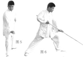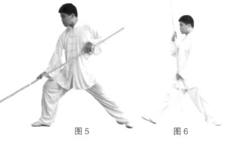 将棍的把端或梢端由下向上提起,力达棍身前端。(图5、6)