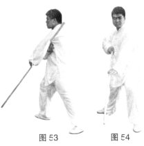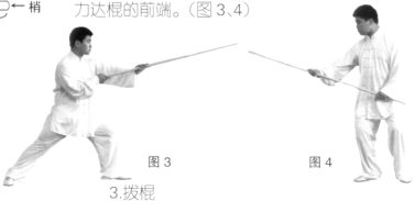 双手持棍,将棍的把端或梢端直线向前刺出,力达棍的前端。(图3、4)