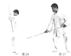 两手持棍,将棍身平直由下向上平托,力达棍身中段。(见图7)