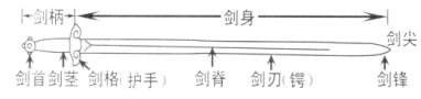 剑身与地面平行,剑尖迅速向前直出为刺,力达剑尖。