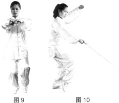 剑刃朝前,剑身斜向下为截,力达刀身前端。(图9、10)