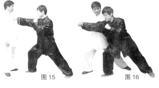 (2)乙上步冲拳,攻击甲胸部。(图15)