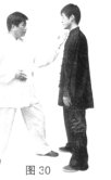 (2)乙上左步出左掌,攻打甲方胸部。(图19)