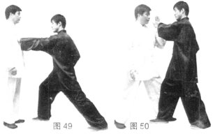 (2)乙上右步,左掌推击甲胸部.(图49)