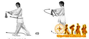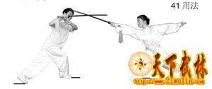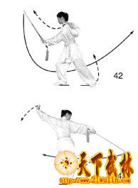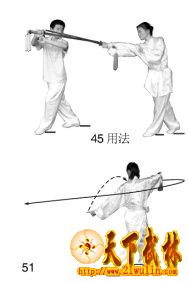 剑向后撩动作以攻击对方手臂或截击其手中器械(图43用法)。
