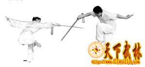 剑削出时两手臂同时向两侧展开,力达上剑刃前部。