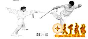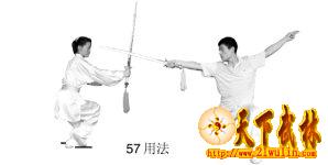 剑刺出以攻击对方下肢部位(图55用法)。