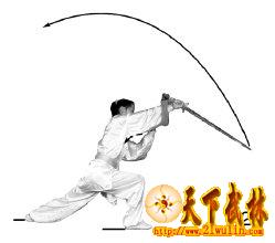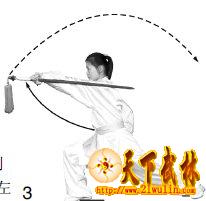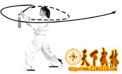 剑的云绕一周和抹出的动作要连贯,剑抹出时上体须向左转拧,手腕用力,力达于下剑刃前部。