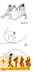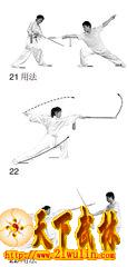 剑拦截对方的器械(图21用法);剑直刺对方躯干部位(图22用法)。