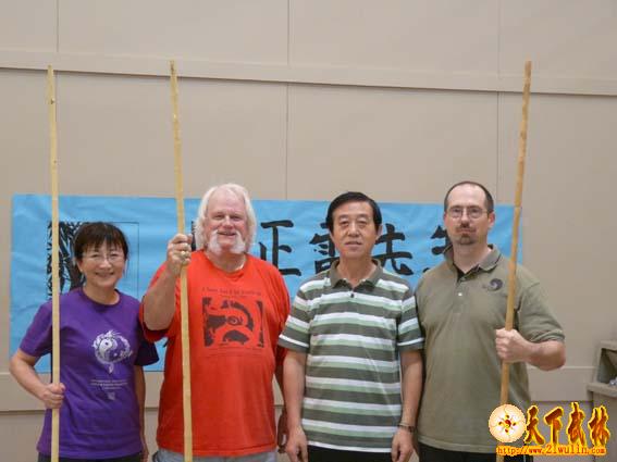 南方周末:平常见到的除了太极拳,好像就是太极剑? 陈正雷:外面还有练太极拳的人说没器械,或只有太极刀、太极剑,这又是偏见。他不会,没人传给他。有些人把太极拳的所有器械都练得慢,这也是偏见。慢是为了什么?为了更好的快!有多少人明白,练剑如游龙,练刀如猛虎,大劈大砍,蹿蹦跳跃。练枪,枪扎一条线,练棍,棍打一大片。如猛虎下山,如蛟龙过海。该柔时柔,该威猛时威猛!这才叫太极,才叫刚柔,才叫快慢,才分出太极的阴阳。很多人不能把道理搞明白。 这些偏见,影响太极拳的整体发展。 南方周末:器械的用法,不仅是太极拳的一个延伸? 陈正雷:无论是短器械、长器械、双器械、单器械、轻机械、重器械,它都是练习手、眼、身法、步协调的一种方法,等于把手臂加长,而且还要能跟身法相结合,把内气贯到器械的锋刃上。 它还得靠你的基本功,你练太极拳,身体协调了,内劲充实了,然后把手臂加长,照样还能协调一致。 南方周末:用剑刺时,弹抖的劲怎样体现? 陈正雷:他是身体的爆发力。 南方周末:不是身体直来直往地刺? 陈正雷:身体旋转。 南方周末:问个幼稚的问题,剑呢,是不是也要旋转? 陈正雷:需要旋转了旋转,不需要就不用。剑和刀这些器械都有自己的特点,你用的时候要符合它们的特点。力达剑尖、刀刃就行。刀就是劈砍的,你还用刀拍人家?剑有刺、劈、撩、挂、点、抹、托、架、扫、截、扎、推、化等用法,照丕公写过几句歌:扎点抹劈刺,缠绕劲落空;挑犁为正道,推托是正宗;引进皆有路,纵放寒光生;缩身如猬形,吐气圆长虹;霞光万道放四射,光辉灿烂妙无穷;太极宝剑长久练,功到熟时自通神。 具体用时,每个器械都不一样。 南方周末:陈氏太极拳还是以拳为主? 陈正雷:练功是练拳。用拳把功夫练出来,身法协调练出来,然后再练器械。把老架一路学会了,手眼身法部能协调了,可以练个器械,器械是调味品,提高兴趣的。冷兵器时代,器械起保命作用,现在是调味品,一种新鲜感。 南方周末:陈家沟还有些什么器械? 陈正雷:单刀、双刀、单剑、双剑、梨花枪加白猿棍、杆子等。单刀原来是十三刀,照丕公又增加了九个动作,变成22式,一个单刀小套路。双刀是家传就有,但没有双剑。照丕公在南京教拳时,有个人背着双剑去找他,让他教双剑,他也不能说我们家就没有,我不会。他说,这两天太忙了,你过两天再来吧。过些天,他就在双刀的基础上,搞出来一套双剑的动作,但从名称、用法,都与剑有区别。 很多人说,你们没有棍法。我们那个叫梨花枪加白猿棍,里边有枪法,有棍法,枪可以当棍,棍可以当枪。这个套路里,既能枪扎一条线,又能棍打一大片。 我小时候没兵器,拿着筷子当双器械练。拿着鸡毛掸子当枪,拿笤帚当大刀,这样学的。