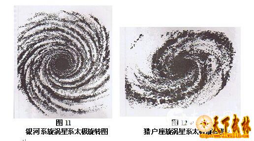 再以天文学而论,浩瀚宇宙中的星系运动,也显化出无数太极现象。比如,美国麦克唐纳天文台摄制的“银河系旋涡星系图片”,可明显看出太极旋转体态(见图11)。旋涡星系左转,旋臂由银核自外向内逐渐加速涡旋,构成了太极星团图样。