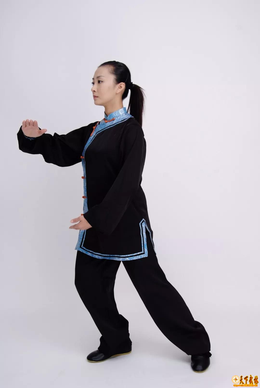 2.左臂手心向下配合右臂向前掤出,定点左腕部,所定之点大小如针尖。