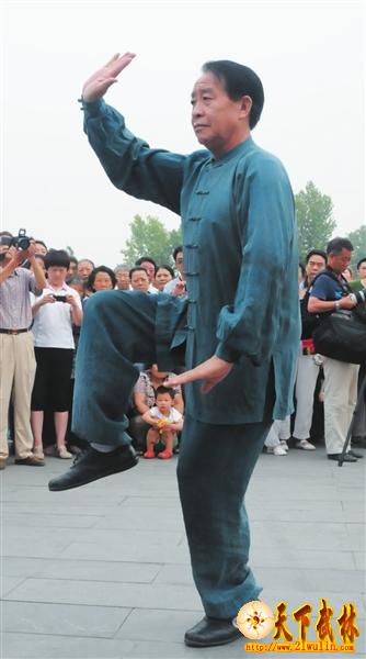 陈式太极拳名家朱天才在太极拳名家“六进”展演暨太极拳名家表演、辅导活动上演拳。