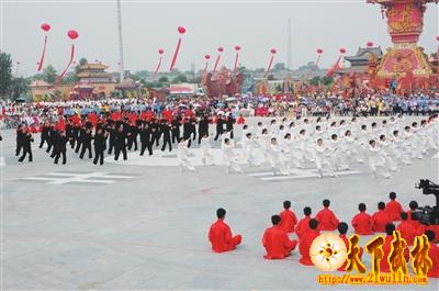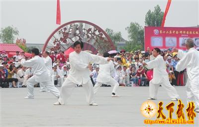 挥舞与太极运动技巧灵活结合的太极功夫扇,又有来自邯郸学院师生气势恢宏、意境高远的太极段位展演和表现武术与太极的“太极神韵”等演出。开幕式结束时,包括邯郸市领导在内的5000余名太极拳爱好者共同表演,展示了太极拳的无穷魅力。