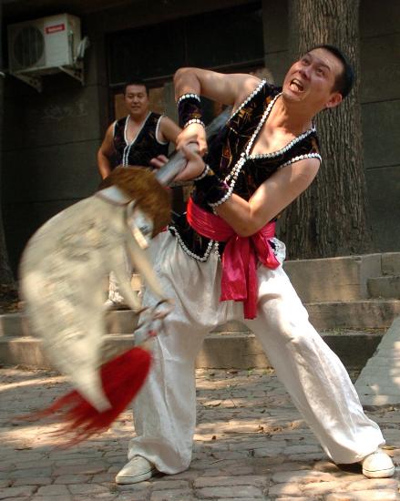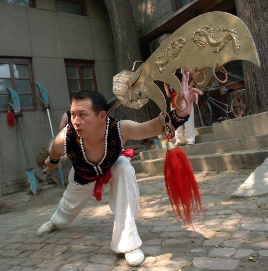 图片新闻-回族重刀武术传人精彩表演 曹仕杰认真练功