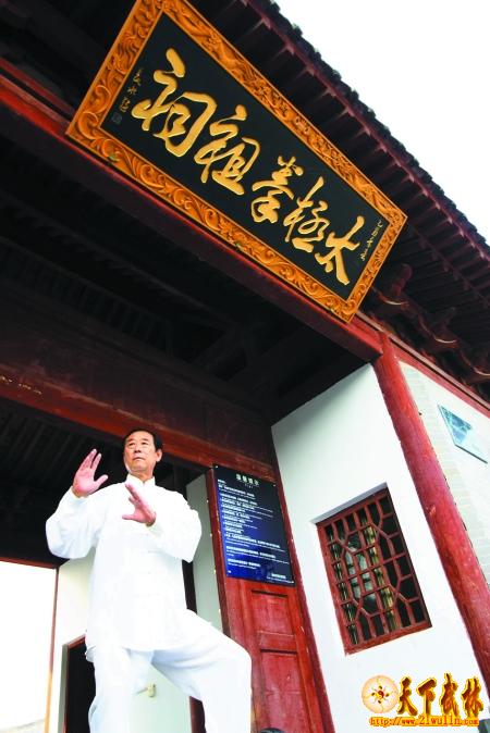 陈式太极拳四大金刚、国家非物质文化遗产代表人物王西安大师在祖祠前演练太极拳。