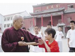 上图为陈庆州正在为暑期短训班的孩子们授拳 活动了一下被太极拳大师陈庆州捏得酸痛了两天的右手,记者反而对写太极拳产业化这个题目多了几分把握。7月17日下午,在市政协常委、温县庆州武院院长陈庆州的办公室里,记者平生第一次领教了陈式太极拳尊古老架的文化精髓: